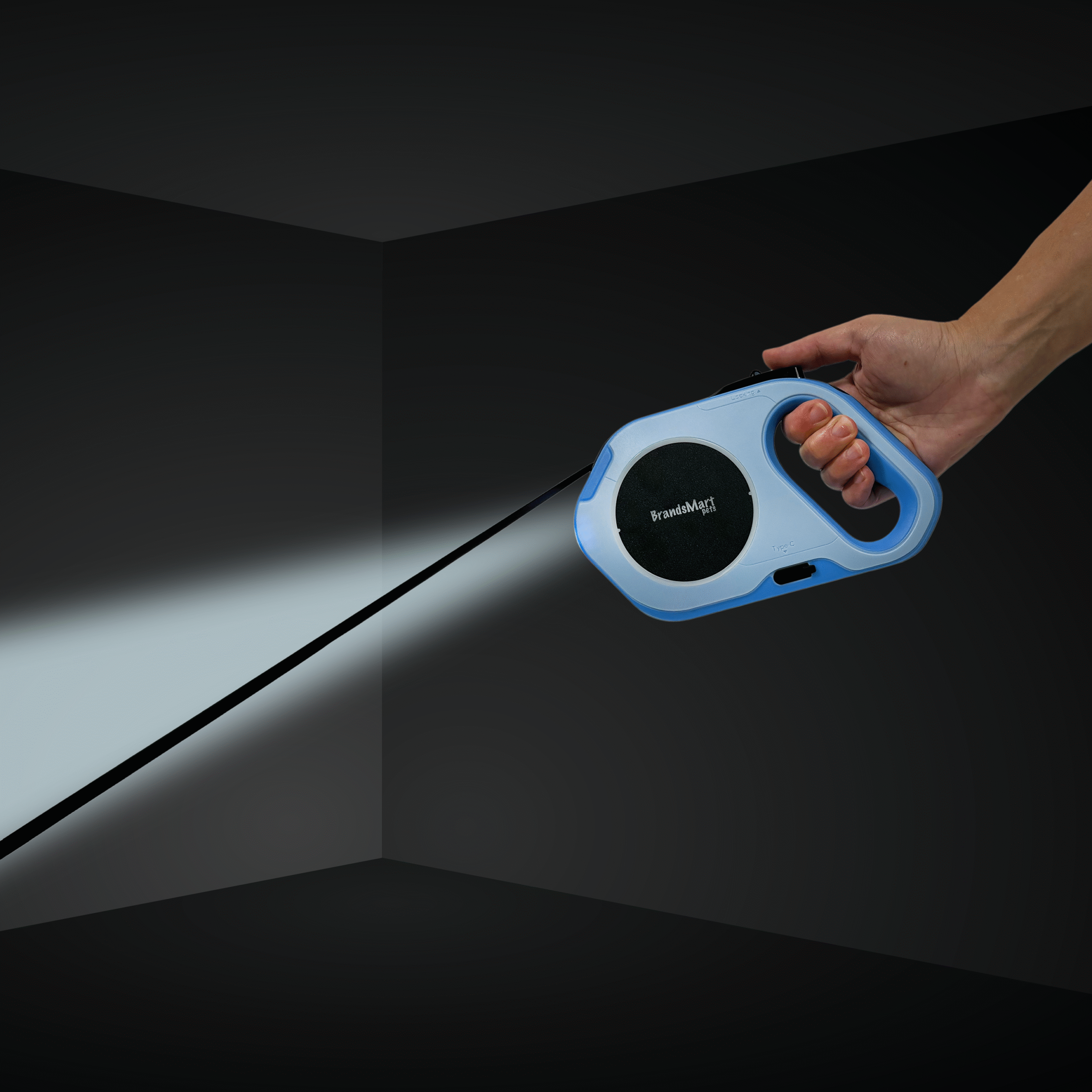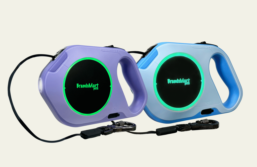 Enjoy safer, hands-free nighttime walks with the BrandsMart Pets 5M Retractable LED Dog Leash. This smart leash features dual lighting systems—a powerful 10-meter flashlight and a glowing ambient LED ring with 3 modes—for enhanced visibility in low light. With a generous 5-meter retractable length, secure locking mechanism, and ergonomic grip, your dog has freedom while you stay in full control. Crafted for medium to large dogs, this leash combines safety, style, and convenience in one sleek, USB-rechargeable design.