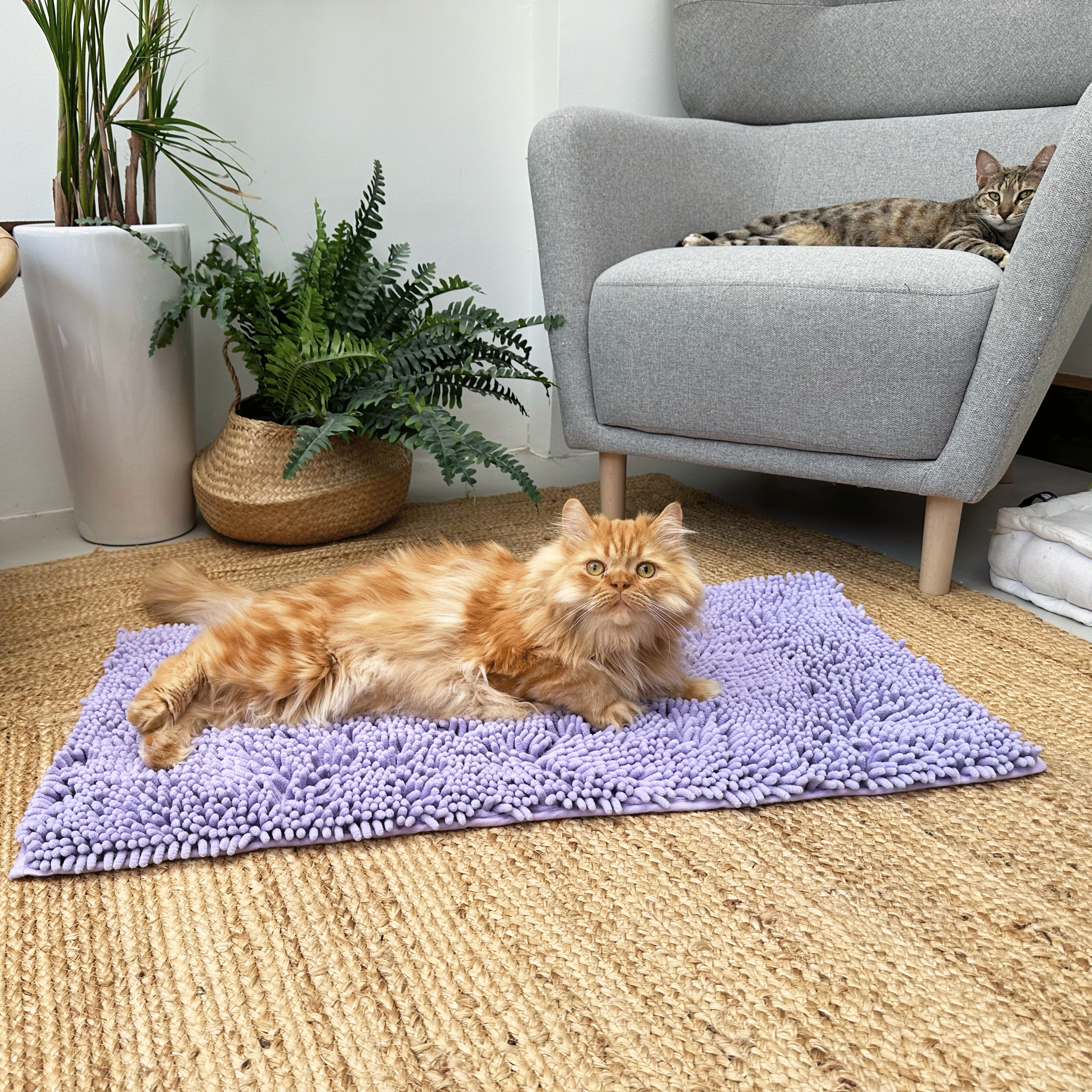 Everything you need for a tidy and stylish space. The XL stainless steel litter box is durable, easy to clean, and designed for larger cats. For a more compact option, the smaller purple stylish litter box blends seamlessly into your home decor. Keep your home sand-free with our litter mat that effectively captures stray litter. Whether you prefer the spacious XL design or the chic smaller box, these products combine practicality with sleek style, ensuring both you and your pet enjoy a cleaner, more comfortable environment.